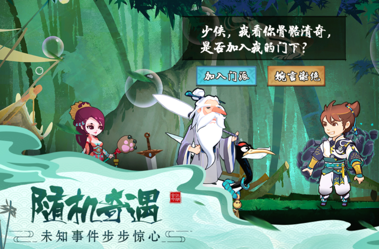 加入了大量武侠元素,人物的造型外观也充满了国风,玩家们将在主线剧情当中开启自己的江湖之旅,趣味随机事件将让整个旅程变得丰富多彩。同时,各大门派的掌门人也会邀请玩家们加入。