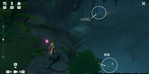 8、进入洞窟,往地图的东方向走,来到图中平台,往下飞前往屏障位置;