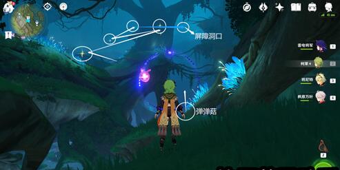 4、进入洞窟,往地图的西方向上看,利用弹弹菇和四叶印,前往屏障洞口位置;