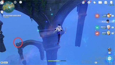 8、从危危岛传送点过来,往东方向标记处走,这里有个风车机关,开启后乘着风圈风场笔直往上非,然后可以看到半空中的第7个星核;