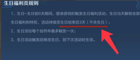 可以看到活动持续至生日结束后3天(不含生日)。所以生日当天加上后3天,生日福利的持续时间为4天。