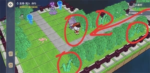 往右上角走,用铲子铲掉竹笋,拿宝箱。