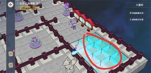 一段剧情过后,点击红圈处出现的皇女交互,进入谜题。