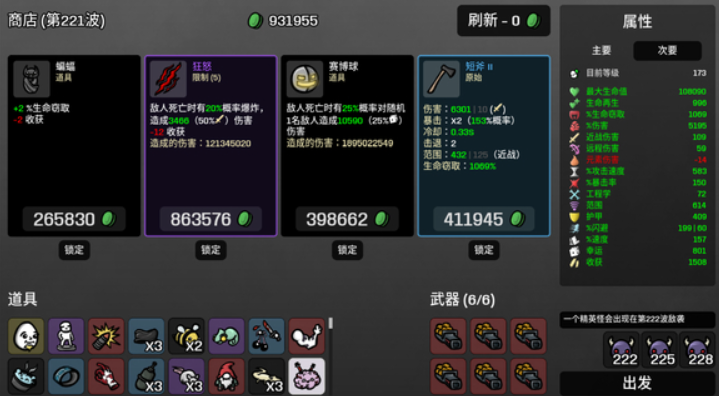1. 绿色草垫:农夫土豆流的基础资源,生命力和伤害都依赖于它。在游戏早期,商店内的价格相对较低,因此应尽可能购买。在宝箱中获得它们时,你会欣喜若狂。然而,当价格过高(超过一半存款)时,就需要权衡是否购买。幸运值较高的情况下,每个boss关卡会掉落十几个宝箱,总能获得所需资源。