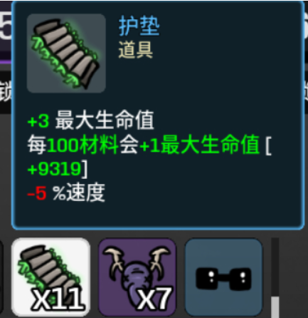3. 狩猎战利品:无尽模式中,掉落物大幅削减,再加上农夫的副作用,使得战利品成为关键。通过频繁的暴击,产出材料以补充草垫生命值。