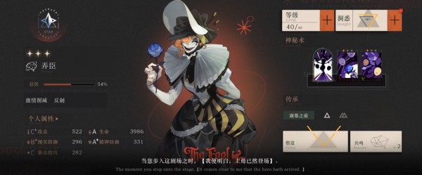 若是玩家在前期拿弄臣来开荒,可以让他与尼克波顿、APPLE一起组队,这是因为弄臣的嘲讽很容易就会在战斗中将自己弄成队伍中血线最低的角色,能完美吃到APPLE为血线最低的友军加血的特效。而尼克波顿能为弄臣加双防,让他的坦度变得更高。