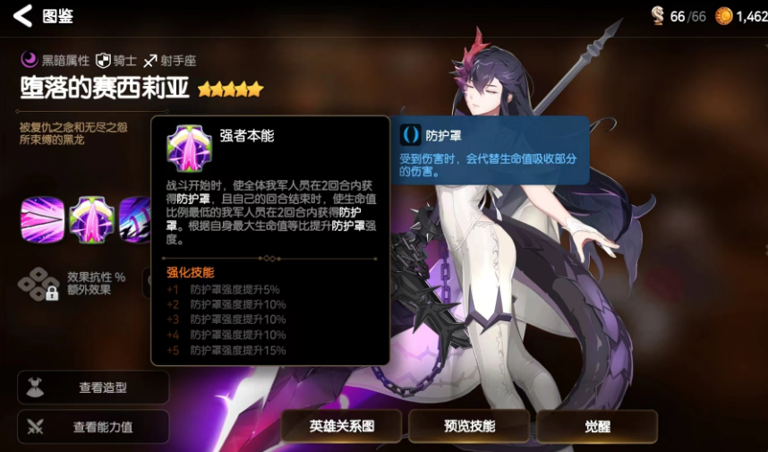 堕落的塞西利亚:虽然是女性形象,但是在强度上丝毫不差,能够用自己手中复仇之矛挑衅对方,强制攻击自身。她的技能可以提升自身的防御力和暴击抗性,还可以给敌人施加减防和流血效果,降低敌人的防御力和生命值。她的专属神器可以增加自身的暴击率和暴击伤害,提高输出能力。