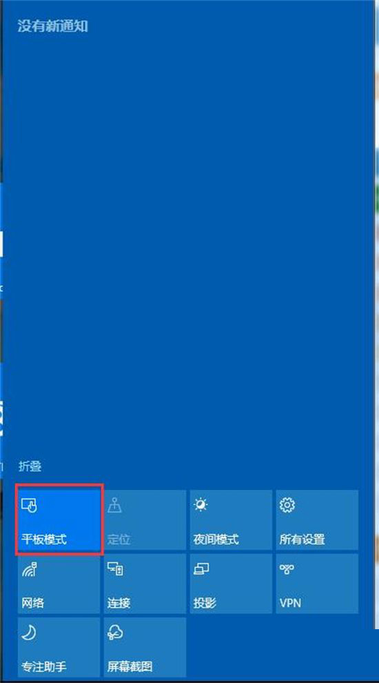 2、在弹出的菜单中可以看到平板模式,目前是处于选中状态;