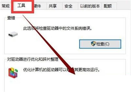 7、点击系统盘的属性界面并选择“工具”点击下方的“优化”即可。