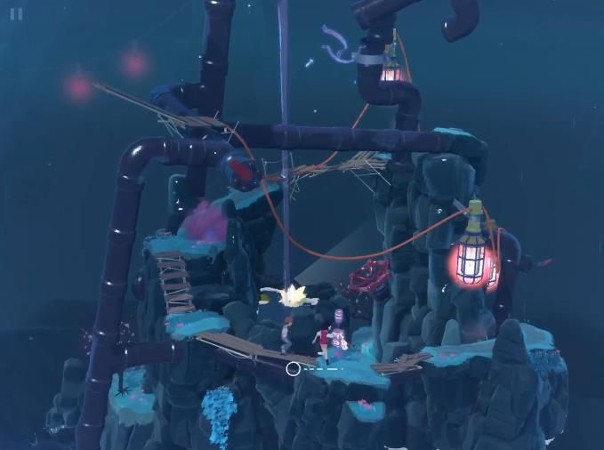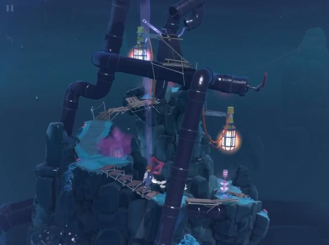 6、随后我们再次触发机关,将水管回溯到断开之前,最后我们一直往前走,将灯笼放在台子上就可以闯关闯关了哦!