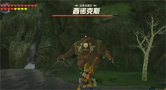 3、西诺克斯的弱点是它的独眼,使用弓箭击中西诺克斯的眼睛能够使其陷入大硬直并坐下·生命值低于50%时,西诺克斯会有意地在林克抽出弓箭时用手护住眼睛。