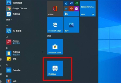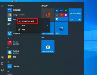如果我们要把某个应用添加到磁贴中去,怎么操作呢?以“百度网盘”为例,在开始菜单中的“百度网盘”上点击鼠标右键,选择“固定到"开始"屏幕”。