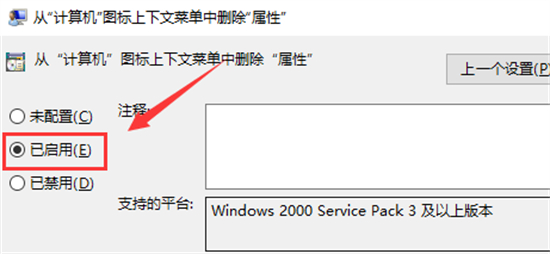 4、然后在打开的窗口界面中,将左上角的“已启用”勾选上。