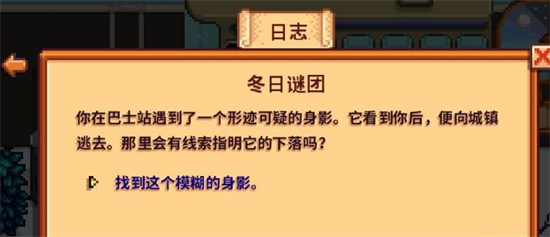 1、冬天一到,日志更新了,在你去巴士站的路上会发现一个【可疑的身影】,然后你的任务就是找到他,点击【接爱任务】。