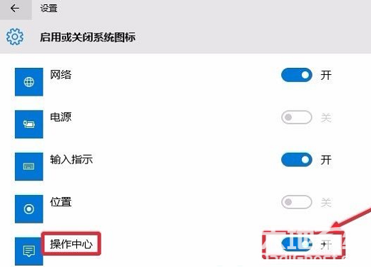 4、这时候我们找到操作中心,将这里的开关关闭即可。
