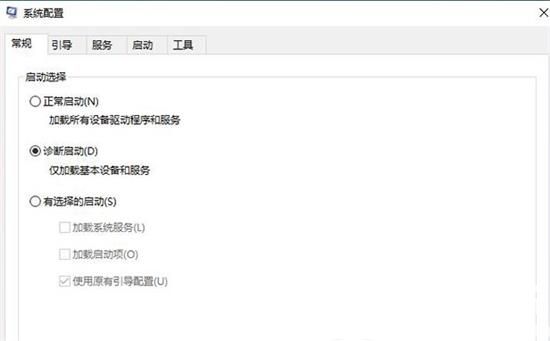 黑屏的时候只有鼠标,我们可以尝试一下键盘上“Ctrl+Alt+DEL”组合键,调出任务管理器,点击“文件”,运行新程序,输入“msconfig”命令并回车确定弹出系统配置界面,在常规的选项卡中,我们点选“诊断启动”,并点击确定,因为大多数的黑屏基本是Windows中某个服务导致的这个问题,重启电脑就可以解决黑屏只有鼠标指针的问题了。