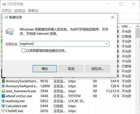 尝试一下Ctrl + Alt + Del组合键,看下是否还有反应,如果有反应的话,会进入一个蓝色的界面,点击任务管理器,然后左上角文件里可以新建或者是运行新任务,输入“explorer”并点击确定。