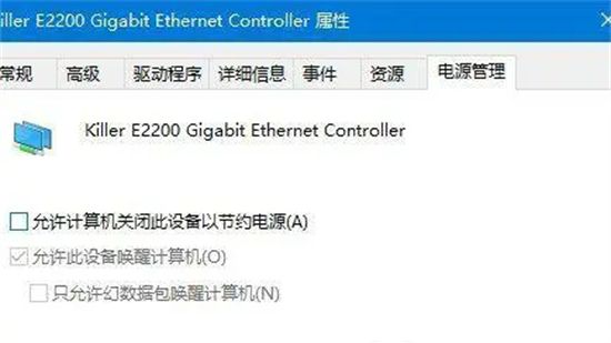 8、网口属性窗口中,切换到开关电源管理选项卡,取消启用容许计算机关闭此机器设备以节省开关电源,最终点一下确定就可以。