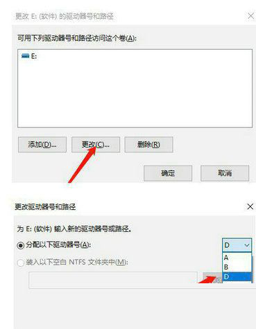 5、在弹出的界面中点击更改,随后选择更改后的盘符,最后保存设置。