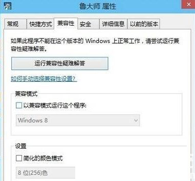 4.勾选“兼容模式运行这个程序”,之后退出再运行鲁大师看看可不可以。