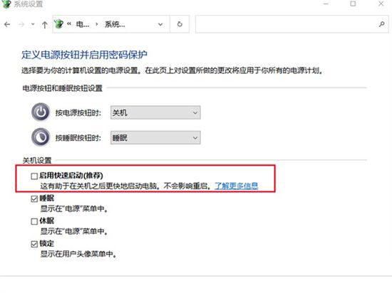 在关机设置中,我们可以关闭启动快速启动,不过先要点击“更改当前不可用的设置”才可以修改。