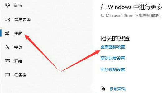 3、切换到“主题”选项,点击“桌面图标设置”。