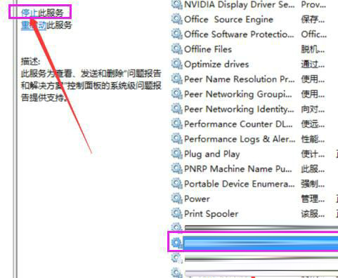 5、然后继续找到Windows Error Reporting Service一样停止此服务。