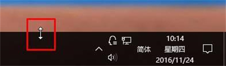 2.接下来我们在将鼠标移动到任务栏边缘,当移动到合适位置鼠标的箭头会变成双向箭头;