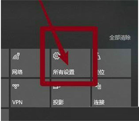 2、下面是进行过更改的,首先点击桌面最右下角【通知】图标--【所有设置】(如图所示)。