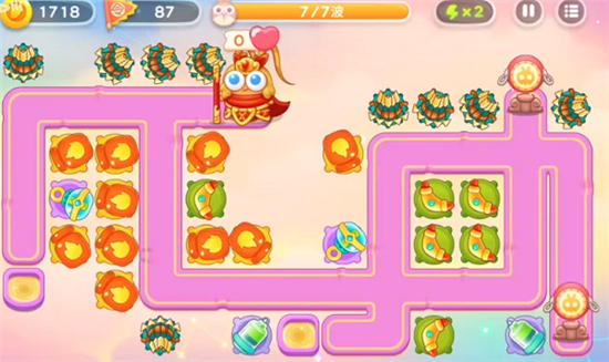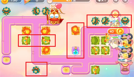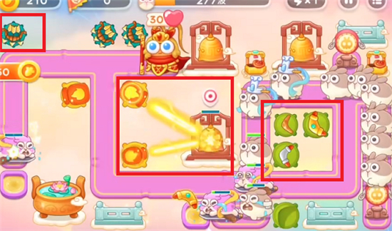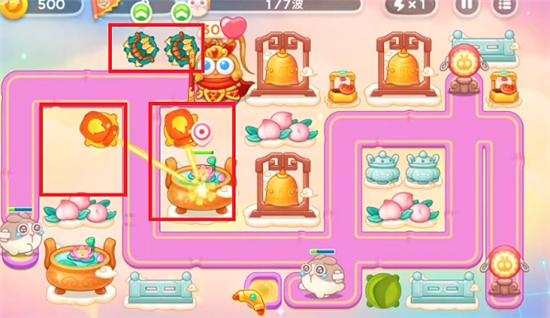 4、第三波一边清理兔子一边清理地图上剩下的道具,继续添加炮塔。