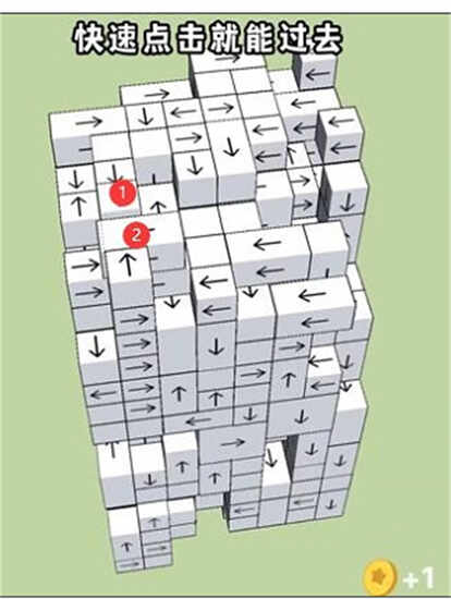 4、被挡住的箭头,如果有空隙的话,可以快速点击两块方块,也可消除,算小BUG,不过一定要速度快。