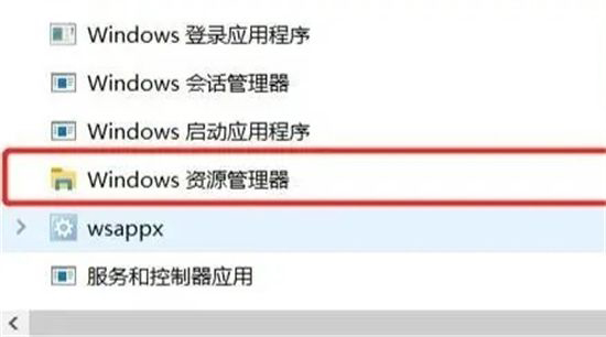 2、打开后,找到并右键“Windows资源管理器”将它重启即可。