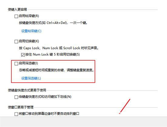4、取消勾选“筛选键”前复选框,点击“确定”即完成设置。