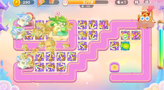 4、今天的几个神仙都是可以直接锁头打的,沿着神仙的移动路线升级炮塔即可,不够的地方再补充一些,之后是葫芦神仙,也可以锁头,整体不算难。