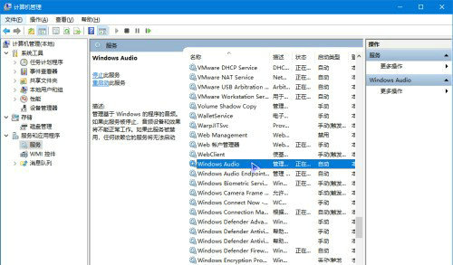 部分win10用户在点击桌面右下角音量图标的时候发现它变成灰色、点不动了,这种情况要怎么办呢?先打开服务面板,在列表中找到Windows Audio服务项,看看是否开启了,没有的话将它启用就可以了。如果Windows Audio已经是开启状态,那么就打开设备管理器,在其中找到音频设备,右键打开属性窗口,选择更新驱动程序就可以了。