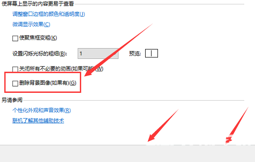 4、在使屏幕上显示的内容更易于查看下,把删除背景图像(如果有)去勾。再应用,确定。即可以了(如图所示)。