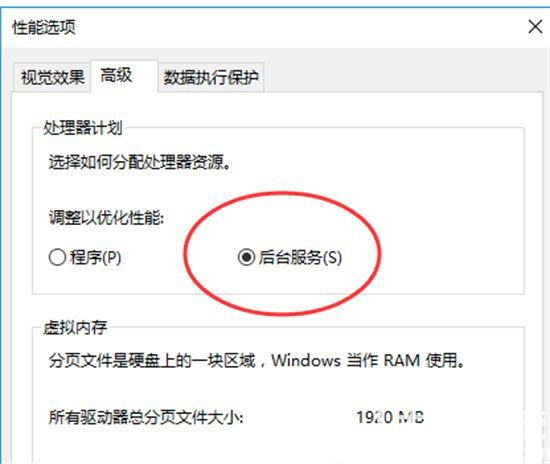 5、把调整以优化性能选到“后台服务”。然后点击确定。有的会提示重启,有的不会提示,提示重启的重启就行了。