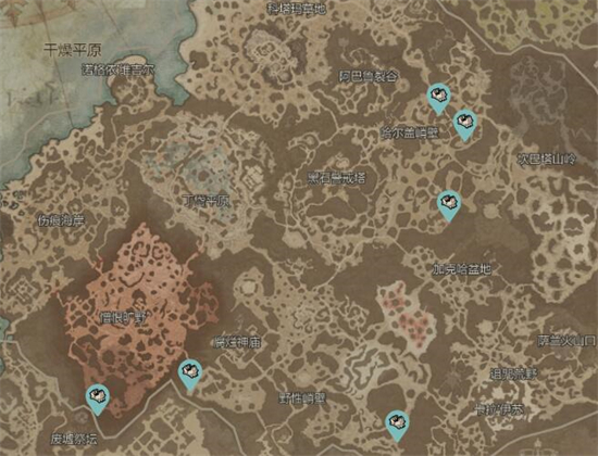 一共有7个宝箱,在渎神旷野上下各1个,然后在伊里曼的火葬柴堆左上角可以找到一个,前往阴郁山麓左边有两个,费提斯湿地左上角1个中间1个。