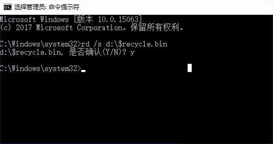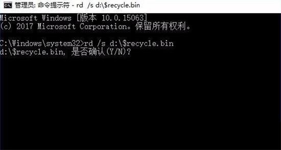 2、进入命令提示符窗口后,输入“rd /s x:recycled ”,回车执行,其中的“X”代表出现问题需要修复的磁盘盘符。