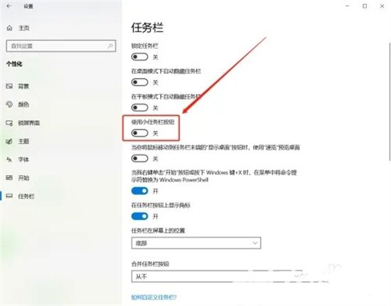 4、最后,取消选中“使用小任务栏按钮”即可。