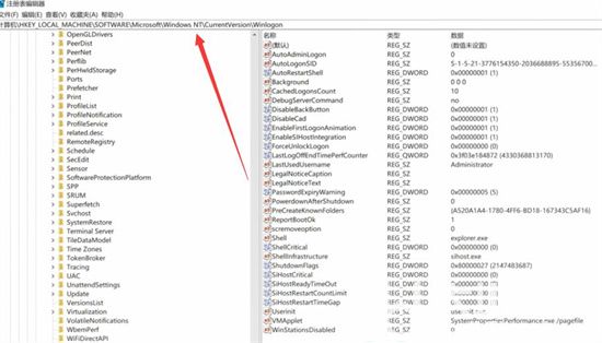 3、依次进入以下路径:HKEY_LOCAL_MACHINE/SOFTWARE/Microsoft/Windows NT/CurrentVersion。
