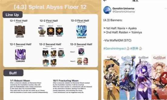 在最新的第三次爆料中,4.3的角色卡池是上半娜维娅+绫华;下半是雷神+宵宫。