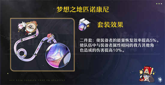 解析:这个套装常态提高能量回复效率,可以加快阮梅的充能速率,对不想凹受击,又想要三动满能的阮梅来说会比较舒服,搭配充能绳和叠影5级的记忆中的模样即可达成。