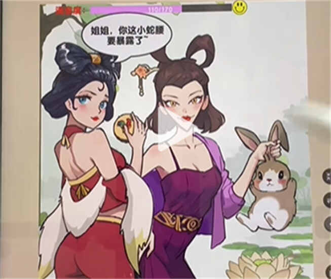 4、然后我们选择向左平移,并且我们拖动取出蛇精头上的钗子后,在将其拖拽到兔子的手上,使其可以进行脱毛。