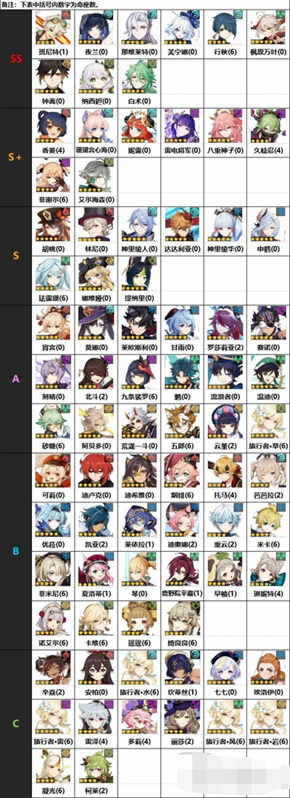 该排行同时考虑了与当前环境最强类型的角色的兼容性,以及是否具有最合适的装备等因素。因此某些角色的评级会高于单项表现,或某些角色的评级会低于当前表现的水平。
