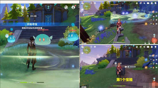 (2)拾取前3个能量球,到第1个宝箱位置,开启挑战,打完怪,再收集完附近的能量球后,即可挖掘出第1个宝箱了