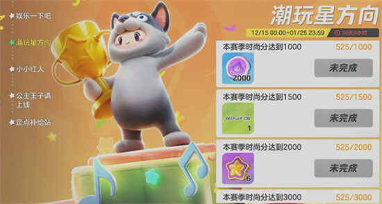 5、最后完成福袋满琳琅、星动选票赛以及潮玩星方向即可获得。