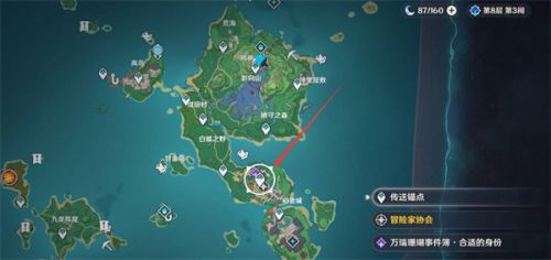 3、进入稻妻以后玩家们直接飞往下图的箭头指着的位置;.
