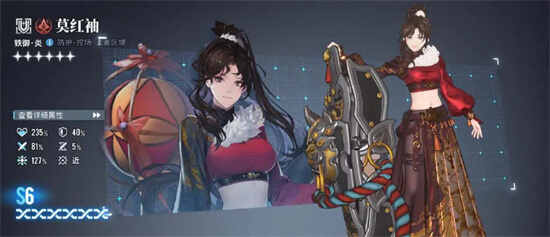 3、莫红袖:炎属性铁御,技能有减伤效果,而且在炎元素地形上能获得大量格挡值,适合搭配纯炎队、雷火队作为主T使用。