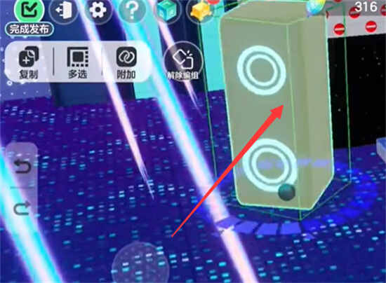 5、制作完成后继续搜索音响、舞台灯模组,导入传送门即可制作完成蹦迪厅。